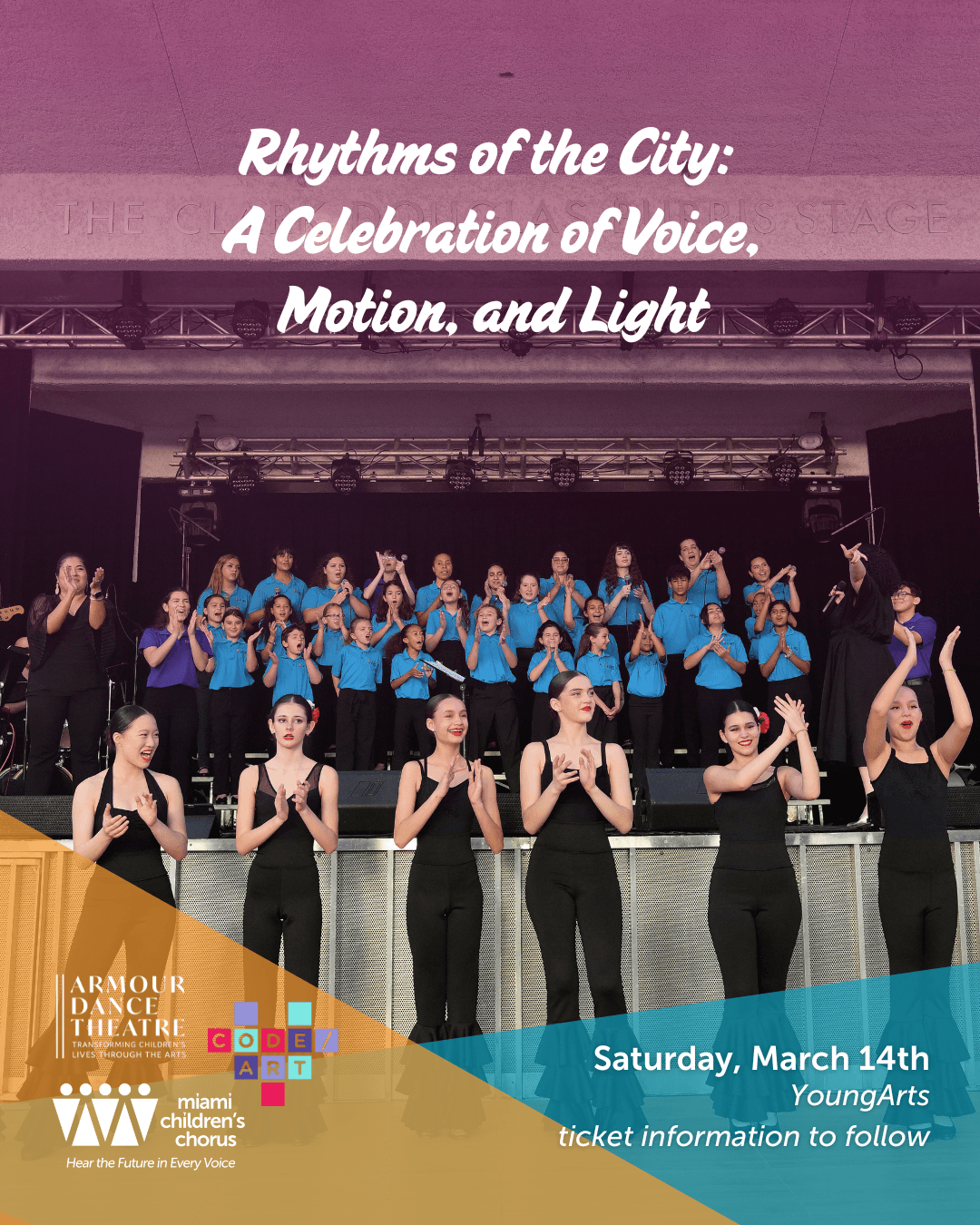 Join our Rhapsody ensemble, in collaboration with Armour Dance Theatre and Code/Art at the YoungArts campus for "Rhythms of the City: A Celebration of Voice, Motion, and Light."