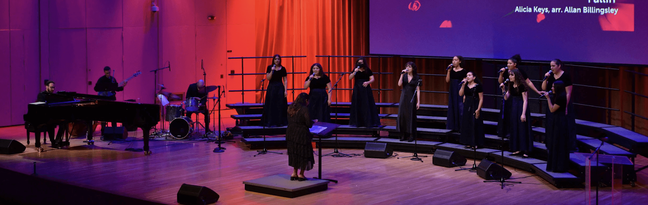 Rhapsody is our contemporary ensemble open to members of Sonata. Members have the opportunity to perform an even more diverse repertoire of pop, a cappella, jazz, show tunes, and Latin music. In this smaller group, choristers receive more solo training, practice performance skills, and are able to perform for a wide range of community events.